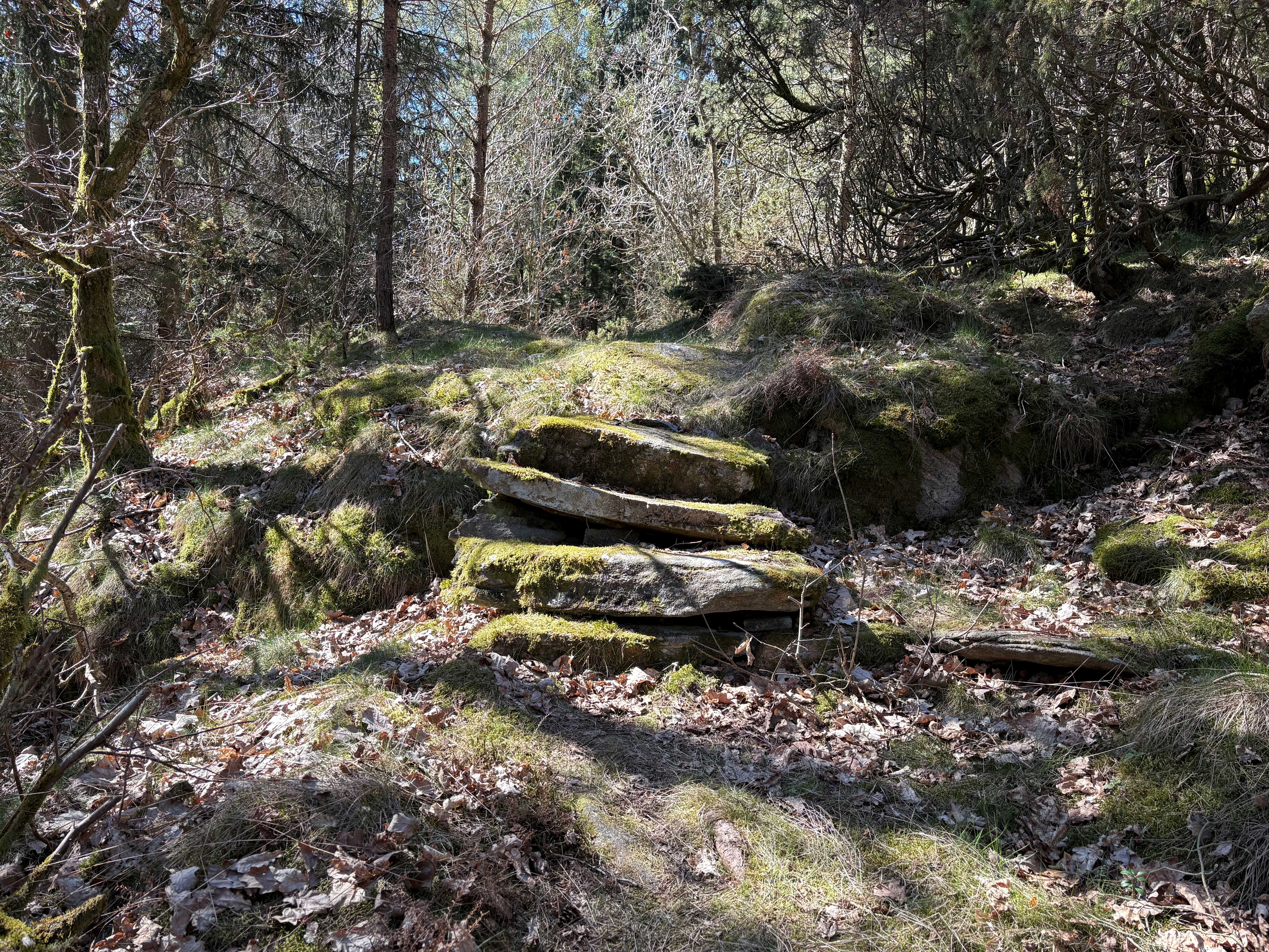 Ojämnt och/eller mjukt underlag: Vissa nivåskillnader. Några partier kräver stöd med händerna för att bibehålla balansen. Passage över t.ex. lägre stättor och kortare trappor. Mindre hinder i form av t.ex. stenar och rötter. Spänger.
