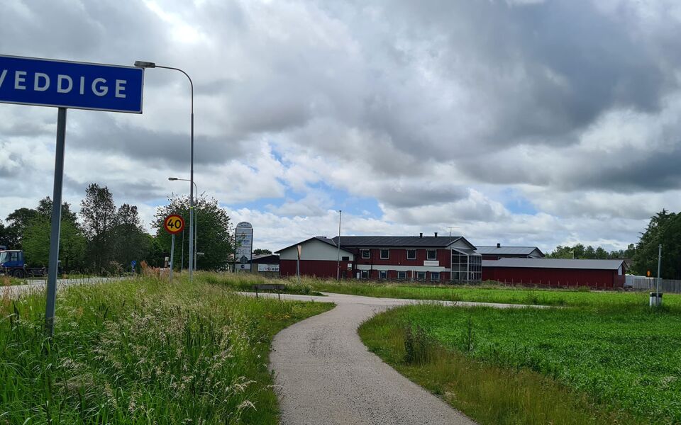 Leden går förbi vackra utsiktsplatser över Stora Hornsjön. Du passerar ruinen efter det gamla torpet Dalen, en märklig stenhäll med inskriptioner och en gammal stenbro från förr. Du går på fina naturstigar förbi små sjöar innan du når orten Veddige. Ortsnamnet härstammar från vikingatiden, då byn kallades Vidhogher. I Veddige finns möjlighet till att proviantera och nå kollektivtrafiken. Närmaste lägerplats är Dranstugan.