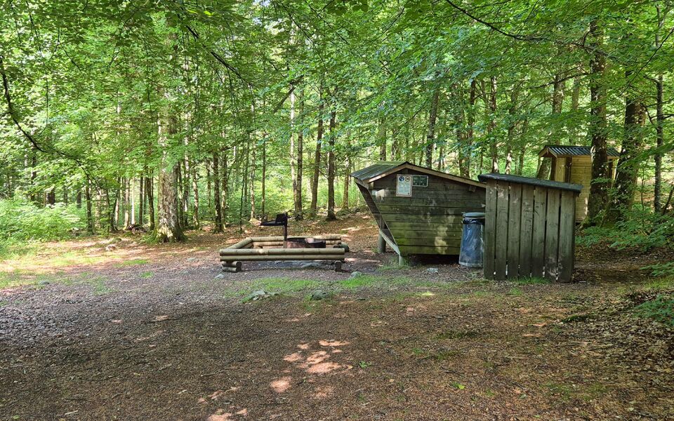 Vindskydd med eldstad vid Skattagård och Frodeparken. Vindskyddet rymmer 4-5 vuxna personer. I Frodeparken finns torrtoa. Tänk på att fylla på vatten i Vessigebro, då det inte finns vatten vid lägerplatserna.