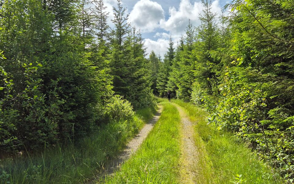 En mycket varierande vandring på lättvandrade vägar och breda stigar i ängs- och skogsmark. Även stigar genom granskog med några stenar, rötter och en liten bro över en bäck. Några medelsvåra backar när man passerar vindkraftparken.